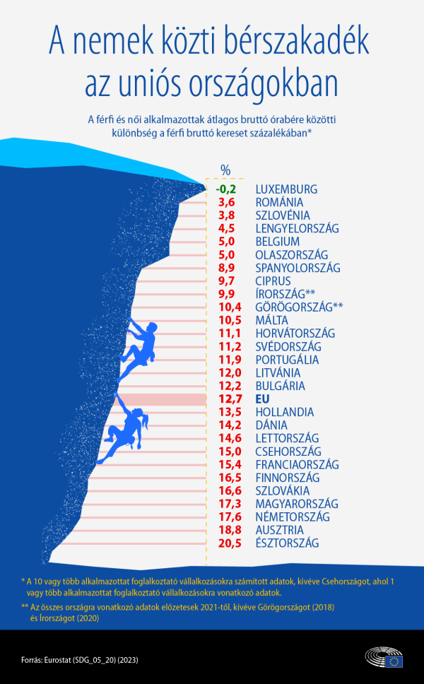 - Magyarországon a nők átlagosan 16,3%-kal kevesebbet keresnek, mint a férfiak.